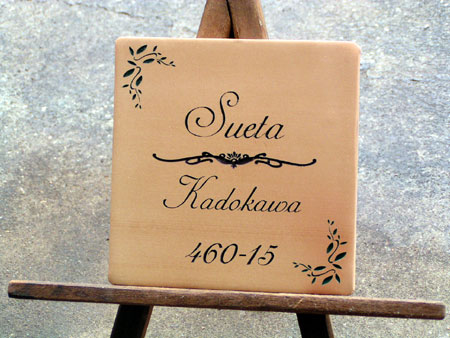 テラコッタ表札 2002/12/4 水曜日2019/10/8 火曜日 by miyasu テラコッタ表札 2世帯用に製作しました。 枕木用として、少し長いボルトを裏面から固定しています。< 6mmのボルトより少し大きめの穴をあけて差し込んで、ボンドで固定します。 sueta お問い合せ用URL : このページで紹介した作品についてのお問い合わせは、上記URLをコピーして 『お問い合せ』のぺージの記入欄に上記「お問い合せ用URL」を貼り付けてご連絡ください。 ご質問、見積依頼、ご注文についても『お問い合せ』のページからヒロノクラフト公式LINE及びメールでお願いします。 ※ご利用いただく端末によっては、コメント送信後にエラー表示されるなどのうまく反映されない場合がございます。 その場合はLINEにて、ご連絡ください。