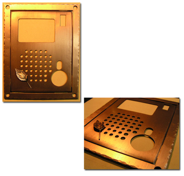 銅製インターホンカバー 2003/3/19 水曜日2012/9/19 水曜日 by miyasu 銅製インターホンカバー すべて手作りのため、作るたびに形が変わってきます(^_^;) 今回は、銅のリーフをアクセントに・・・ お問い合せ用URL : このページで紹介した作品についてのお問い合わせは、上記URLをコピーして 『お問い合せ』のぺージの記入欄に上記「お問い合せ用URL」を貼り付けてご連絡ください。 ご質問、見積依頼、ご注文についても『お問い合せ』のページからヒロノクラフト公式LINE及びメールでお願いします。 ※ご利用いただく端末によっては、コメント送信後にエラー表示されるなどのうまく反映されない場合がございます。 その場合はLINEにて、ご連絡ください。