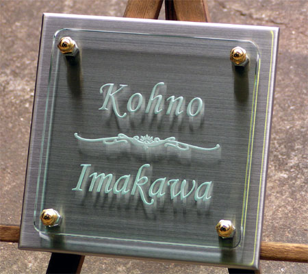 クリスタルガラス表札 2003/10/6 月曜日2019/10/8 火曜日 by miyasu クリスタルガラス表札 ステンレスベースクリスタルガラス ヘアーライン仕上げのステンレス(200X200 t8)にガラス彫刻 素材を活かしてシンプルなデザインに・・ kohno imakawa お問い合せ用URL : このページで紹介した作品についてのお問い合わせは、上記URLをコピーして 『お問い合せ』のぺージの記入欄に上記「お問い合せ用URL」を貼り付けてご連絡ください。 ご質問、見積依頼、ご注文についても『お問い合せ』のページからヒロノクラフト公式LINE及びメールでお願いします。 ※ご利用いただく端末によっては、コメント送信後にエラー表示されるなどのうまく反映されない場合がございます。 その場合はLINEにて、ご連絡ください。