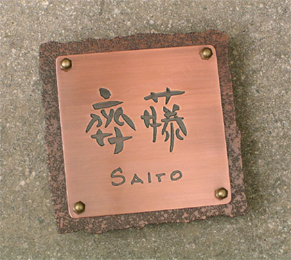 銅表札 2003/12/3 水曜日2019/10/9 水曜日 by miyasu 銅・真鍮の表札 梨地仕上げの銅板に明るくいぶした銅板を重ねました。 書体はヒロノクラフトで書いてご提案する”和(なごみ)書体”です。W176XH176 ヒロノクラフト銅製ポストと一緒に取り付けられます。 saito 齋藤 お問い合せ用URL : このページで紹介した作品についてのお問い合わせは、上記URLをコピーして 『お問い合せ』のぺージの記入欄に上記「お問い合せ用URL」を貼り付けてご連絡ください。 ご質問、見積依頼、ご注文についても『お問い合せ』のページからヒロノクラフト公式LINE及びメールでお願いします。 ※ご利用いただく端末によっては、コメント送信後にエラー表示されるなどのうまく反映されない場合がございます。 その場合はLINEにて、ご連絡ください。
