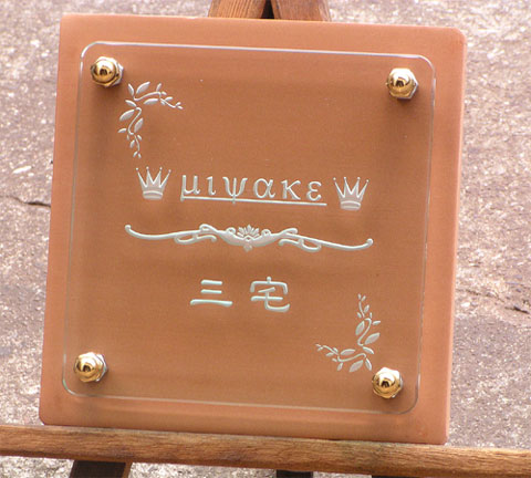 テラコッタ表札 2003/12/3 水曜日2019/10/9 水曜日 by miyasu テラコッタ表札 お客様のご希望のイメージを彫刻しました。 miyake 三宅 お問い合せ用URL : このページで紹介した作品についてのお問い合わせは、上記URLをコピーして 『お問い合せ』のぺージの記入欄に上記「お問い合せ用URL」を貼り付けてご連絡ください。 ご質問、見積依頼、ご注文についても『お問い合せ』のページからヒロノクラフト公式LINE及びメールでお願いします。 ※ご利用いただく端末によっては、コメント送信後にエラー表示されるなどのうまく反映されない場合がございます。 その場合はLINEにて、ご連絡ください。