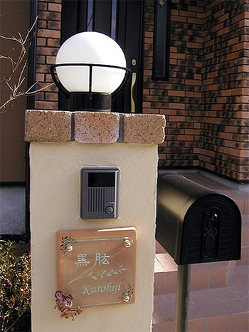 施工写真 ~千葉~ 2004/2/24 火曜日2012/8/24 金曜日 by miyasu 施工写真 やさしい色合いの門柱にテラコッタのクリスタルガラス表札 お問い合せ用URL : このページで紹介した作品についてのお問い合わせは、上記URLをコピーして 『お問い合せ』のぺージの記入欄に上記「お問い合せ用URL」を貼り付けてご連絡ください。 ご質問、見積依頼、ご注文についても『お問い合せ』のページからヒロノクラフト公式LINE及びメールでお願いします。 ※ご利用いただく端末によっては、コメント送信後にエラー表示されるなどのうまく反映されない場合がございます。 その場合はLINEにて、ご連絡ください。