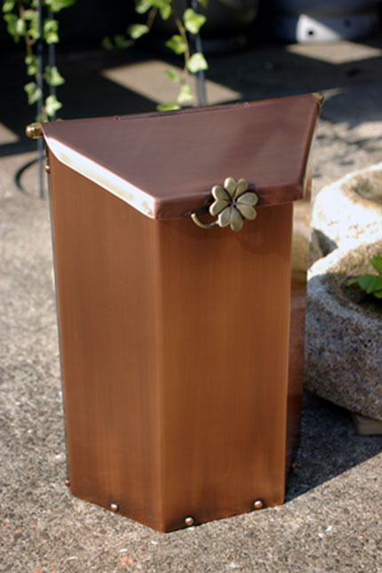 縦型銅製ポスト 2004/7/15 木曜日2012/9/19 水曜日 by miyasu 銅製ポスト ご希望のクローバーの取っ手を製作しました。 お問い合せ用URL : このページで紹介した作品についてのお問い合わせは、上記URLをコピーして 『お問い合せ』のぺージの記入欄に上記「お問い合せ用URL」を貼り付けてご連絡ください。 ご質問、見積依頼、ご注文についても『お問い合せ』のページからヒロノクラフト公式LINE及びメールでお願いします。 ※ご利用いただく端末によっては、コメント送信後にエラー表示されるなどのうまく反映されない場合がございます。 その場合はLINEにて、ご連絡ください。