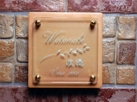 クリスタルガラス表札 2004/7/15 木曜日2012/9/21 金曜日 by miyasu クリスタルガラス表札 流れるようなデザインで・・・ お問い合せ用URL : このページで紹介した作品についてのお問い合わせは、上記URLをコピーして 『お問い合せ』のぺージの記入欄に上記「お問い合せ用URL」を貼り付けてご連絡ください。 ご質問、見積依頼、ご注文についても『お問い合せ』のページからヒロノクラフト公式LINE及びメールでお願いします。 ※ご利用いただく端末によっては、コメント送信後にエラー表示されるなどのうまく反映されない場合がございます。 その場合はLINEにて、ご連絡ください。