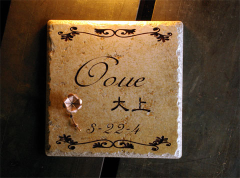 アンティークタイル表札 2004/8/6 金曜日2012/10/1 月曜日 by miyasu アンティークタイル表札【薄茶色】 表情豊かなアンティークタイルに銅のクロバーを付けて・・ お問い合せ用URL : このページで紹介した作品についてのお問い合わせは、上記URLをコピーして 『お問い合せ』のぺージの記入欄に上記「お問い合せ用URL」を貼り付けてご連絡ください。 ご質問、見積依頼、ご注文についても『お問い合せ』のページからヒロノクラフト公式LINE及びメールでお願いします。 ※ご利用いただく端末によっては、コメント送信後にエラー表示されるなどのうまく反映されない場合がございます。 その場合はLINEにて、ご連絡ください。