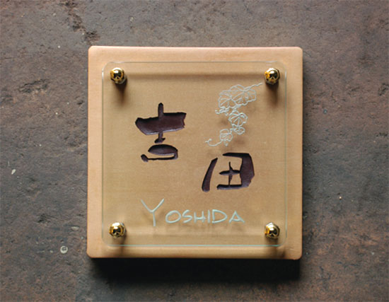 クリスタルガラス表札 2004/10/25 月曜日2012/9/21 金曜日 by miyasu クリスタルガラス表札 和書体をテラコッタにメインで配置しガラスにワンポイントを・・・ お問い合せ用URL : このページで紹介した作品についてのお問い合わせは、上記URLをコピーして 『お問い合せ』のぺージの記入欄に上記「お問い合せ用URL」を貼り付けてご連絡ください。 ご質問、見積依頼、ご注文についても『お問い合せ』のページからヒロノクラフト公式LINE及びメールでお願いします。 ※ご利用いただく端末によっては、コメント送信後にエラー表示されるなどのうまく反映されない場合がございます。 その場合はLINEにて、ご連絡ください。