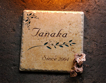 アンティークタイル表札 2004/12/9 木曜日2012/10/1 月曜日 by miyasu アンティークタイル表札【薄茶色】 銅製アイビーを取り付けて立体的な表札に・・・ お問い合せ用URL : このページで紹介した作品についてのお問い合わせは、上記URLをコピーして 『お問い合せ』のぺージの記入欄に上記「お問い合せ用URL」を貼り付けてご連絡ください。 ご質問、見積依頼、ご注文についても『お問い合せ』のページからヒロノクラフト公式LINE及びメールでお願いします。 ※ご利用いただく端末によっては、コメント送信後にエラー表示されるなどのうまく反映されない場合がございます。 その場合はLINEにて、ご連絡ください。