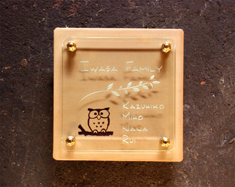 クリスタルガラス表札 2004/12/15 水曜日2012/9/21 金曜日 by miyasu クリスタルガラス表札 ご家族のお名前をレイアウト お問い合せ用URL : このページで紹介した作品についてのお問い合わせは、上記URLをコピーして 『お問い合せ』のぺージの記入欄に上記「お問い合せ用URL」を貼り付けてご連絡ください。 ご質問、見積依頼、ご注文についても『お問い合せ』のページからヒロノクラフト公式LINE及びメールでお願いします。 ※ご利用いただく端末によっては、コメント送信後にエラー表示されるなどのうまく反映されない場合がございます。 その場合はLINEにて、ご連絡ください。