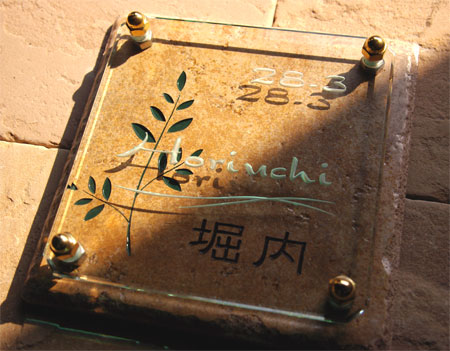 クリスタルガラス表札 2005/3/31 木曜日2012/9/21 金曜日 by miyasu クリスタルガラス表札 一つ一つバランスを考えながらレイアウトします。 素材が表現する空間を作りました。 ガラスの側面を五面体にカットし、光の吸収と分散を強調させます。 番地を追加して仕上がりです。 お問い合せ用URL : このページで紹介した作品についてのお問い合わせは、上記URLをコピーして 『お問い合せ』のぺージの記入欄に上記「お問い合せ用URL」を貼り付けてご連絡ください。 ご質問、見積依頼、ご注文についても『お問い合せ』のページからヒロノクラフト公式LINE及びメールでお願いします。 ※ご利用いただく端末によっては、コメント送信後にエラー表示されるなどのうまく反映されない場合がございます。 その場合はLINEにて、ご連絡ください。