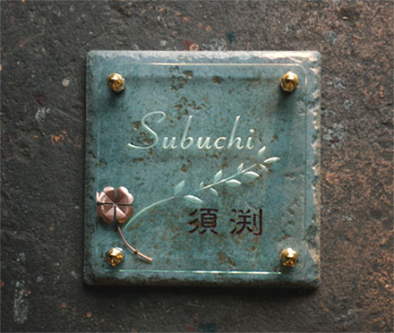 クリスタルガラス表札 アンティークタイル緑青 2005/4/15 金曜日2012/9/19 水曜日 by miyasu クリスタルガラス表札 緑青色のアンティークタイルに銅のクローバーのアクセントで・・ 素材の色やデザインが家のシンボルとして門柱を飾ります。 お問い合せ用URL : このページで紹介した作品についてのお問い合わせは、上記URLをコピーして 『お問い合せ』のぺージの記入欄に上記「お問い合せ用URL」を貼り付けてご連絡ください。 ご質問、見積依頼、ご注文についても『お問い合せ』のページからヒロノクラフト公式LINE及びメールでお願いします。 ※ご利用いただく端末によっては、コメント送信後にエラー表示されるなどのうまく反映されない場合がございます。 その場合はLINEにて、ご連絡ください。