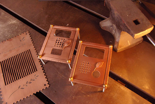 クリスタルガラス表札 2005/5/12 木曜日2012/10/1 月曜日 by miyasu クリスタルガラス表札 ゆっくりと打ち合わせを重ねイメージを作り上げました。 銅製インターホンカバー、埋め込み型ポストももうすぐ仕上がります。 パーツはある程度製作しているのですが、ご注文いただいてから組立てています。 手に馴染んだ道具や工具で仕上げます。 銅製のインターホンカバーも仕上がりました。 お問い合せ用URL : このページで紹介した作品についてのお問い合わせは、上記URLをコピーして 『お問い合せ』のぺージの記入欄に上記「お問い合せ用URL」を貼り付けてご連絡ください。 ご質問、見積依頼、ご注文についても『お問い合せ』のページからヒロノクラフト公式LINE及びメールでお願いします。 ※ご利用いただく端末によっては、コメント送信後にエラー表示されるなどのうまく反映されない場合がございます。 その場合はLINEにて、ご連絡ください。