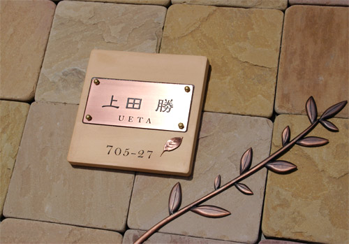 テラコッタ表札 銅のプレート 2005/5/19 木曜日2012/8/22 水曜日 by miyasu テラコッタ表札 テラコッタタイルに銅板を埋め込み彫刻しました。 ワンポイントに手作りの銅のリーフを取り付けました。 お問い合せ用URL : このページで紹介した作品についてのお問い合わせは、上記URLをコピーして 『お問い合せ』のぺージの記入欄に上記「お問い合せ用URL」を貼り付けてご連絡ください。 ご質問、見積依頼、ご注文についても『お問い合せ』のページからヒロノクラフト公式LINE及びメールでお願いします。 ※ご利用いただく端末によっては、コメント送信後にエラー表示されるなどのうまく反映されない場合がございます。 その場合はLINEにて、ご連絡ください。