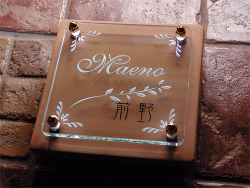 クリスタルガラス表札 LED仕様 2005/6/17 金曜日2012/8/22 水曜日 by miyasu クリスタルガラス表札【LED仕様】 デザインはシンプルにレイアウト・・・ 漢字はテラコッタに彫刻しています。LED点灯 ・・ 暗闇ではガラスに彫刻した文字だけが浮かび上がります。 お問い合せ用URL : このページで紹介した作品についてのお問い合わせは、上記URLをコピーして 『お問い合せ』のぺージの記入欄に上記「お問い合せ用URL」を貼り付けてご連絡ください。 ご質問、見積依頼、ご注文についても『お問い合せ』のページからヒロノクラフト公式LINE及びメールでお願いします。 ※ご利用いただく端末によっては、コメント送信後にエラー表示されるなどのうまく反映されない場合がございます。 その場合はLINEにて、ご連絡ください。