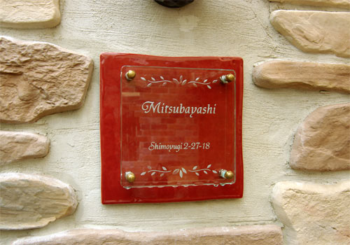 Free-Style表札 フレーバータイル 2006/4/11 火曜日2012/10/2 火曜日 by miyasu フリースタイル表札 クリスタルガラスフレーバータイルスカーレット 鮮やかな色彩と手作り風の形状で個性的なマイホームのシンボルに・・・ オリジナルフレーバータイルスカーレットをベース ~NEW~ 深い青色のフレーバータイルにステンレスの切文字を象嵌(ぞうがん)加工しました。 お問い合せ用URL : このページで紹介した作品についてのお問い合わせは、上記URLをコピーして 『お問い合せ』のぺージの記入欄に上記「お問い合せ用URL」を貼り付けてご連絡ください。 ご質問、見積依頼、ご注文についても『お問い合せ』のページからヒロノクラフト公式LINE及びメールでお願いします。 ※ご利用いただく端末によっては、コメント送信後にエラー表示されるなどのうまく反映されない場合がございます。 その場合はLINEにて、ご連絡ください。