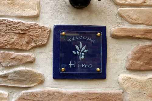 表情豊かな濃いブラウンのアルカイックタイルをベースにフリースタイル表札で仕上げました。