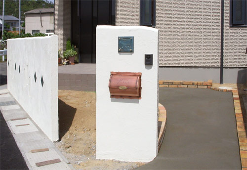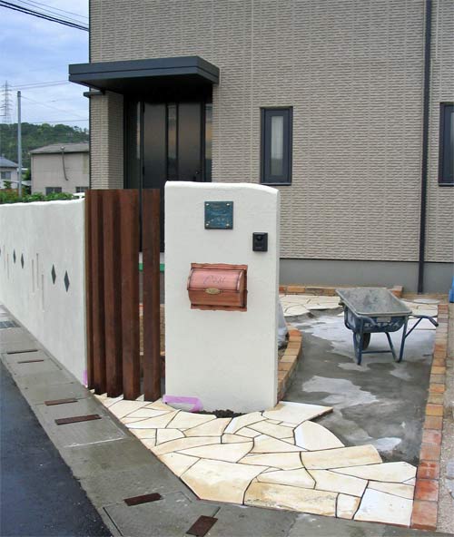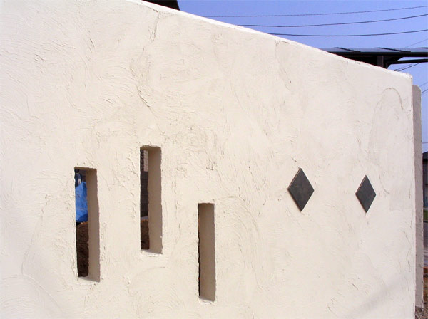 スリットを入れた塀をジョリパットでコテで仕上げました。