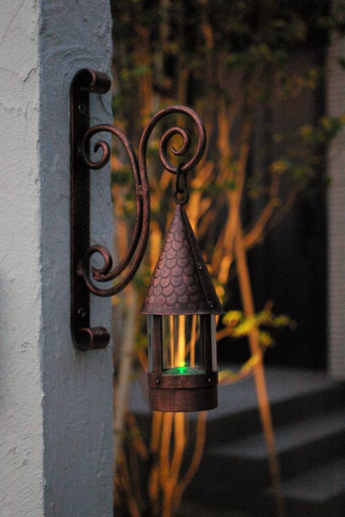銅で作ったオリジナルハンギングとソーラーで灯る銅製のミチシルベ灯