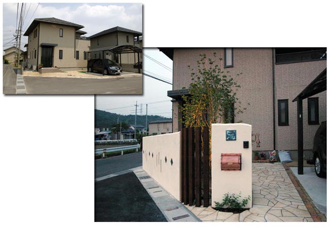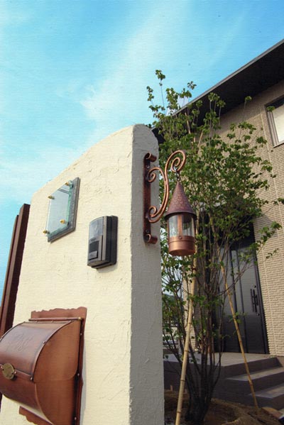 美安さん、このたびは我が家にこんなにもステキな魔法をかけてくださってほんとにほんとにどうもありがとうございました。工事が始まってから、主人と二人毎日がほんとに「わくわくっ」と「感動」の連続で、雨降りの日のつまらなかったことつまらなかったこと。 完成のその瞬間まで、幸せな気分でいっぱいでした。 7ヶ月の間に、すっかりリビングのオブジェとなっていた表札が本来活躍するべき場所へ収まったとき、外へ出なければ見られなくなってしまう寂しさと同時にやっぱり感動でした。長旅の疲れを見せていたやまぼうしクンも岡山っ子になって2日、葉っぱがどんどん元気を取り戻し、繊細でなんともいえない優しい雰囲気をかもし出しています。ポーチに座り、庭をぼおおっと眺める時間はとてもゆっくりで、2週間前の風景が遠い昔のことのように思われます。 これからは主人と二人、やまぼうしクンに四季折々の草花で仲間を作る楽しさを大切にしていきたいと思います。 このたびはほんとに