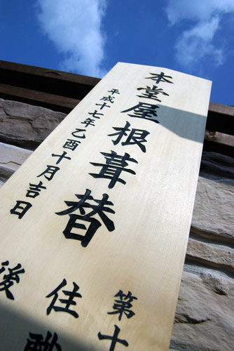 後世に伝える・・・ 2006/7/30 日曜日2012/8/23 木曜日 by miyasu ヒロノクラフト便り お寺の屋根の葺替工事を後世に伝える檜の板を彫刻しました。 屋根裏の梁に固定して数百年後の改修工事までのタイムカプセルになります。 お問い合せ用URL : このページで紹介した作品についてのお問い合わせは、上記URLをコピーして 『お問い合せ』のぺージの記入欄に上記「お問い合せ用URL」を貼り付けてご連絡ください。 ご質問、見積依頼、ご注文についても『お問い合せ』のページからヒロノクラフト公式LINE及びメールでお願いします。 ※ご利用いただく端末によっては、コメント送信後にエラー表示されるなどのうまく反映されない場合がございます。 その場合はLINEにて、ご連絡ください。