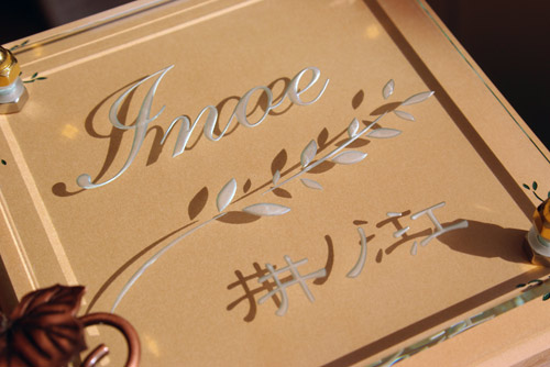 クリスタルガラス表札 オーダーサイズ 2006/9/15 金曜日2012/9/11 火曜日 by miyasu クリスタルガラス表札 既製の門柱に取付けるためベースのテラコッタタイルをご希望のサイズ(14.8X14.8cm)にカットして製作しました。 エッジを立てて手作業で立体的な彫刻に仕上げます。文字の落とす影が表札を豊かな表情に・・・ お問い合せ用URL : このページで紹介した作品についてのお問い合わせは、上記URLをコピーして 『お問い合せ』のぺージの記入欄に上記「お問い合せ用URL」を貼り付けてご連絡ください。 ご質問、見積依頼、ご注文についても『お問い合せ』のページからヒロノクラフト公式LINE及びメールでお願いします。 ※ご利用いただく端末によっては、コメント送信後にエラー表示されるなどのうまく反映されない場合がございます。 その場合はLINEにて、ご連絡ください。