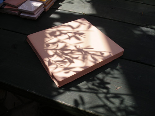 温もりのあるテラコッタタイルに深く彫刻して着色します。