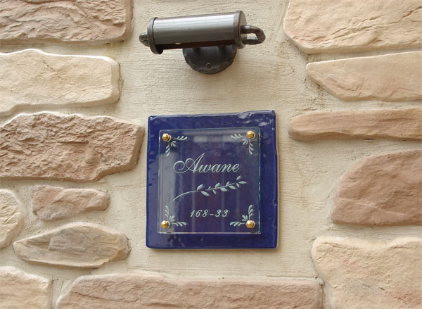 Free-Style表札 2007/7/15 日曜日2012/10/2 火曜日 by miyasu フリースタイル表札 鮮やかなインディゴブルーのフレーバータイルをベースに彫刻したガラスを重ねました。 個性的なタイルがマイホームのシンボルカラーになります。 広島に送ります。 お問い合せ用URL : このページで紹介した作品についてのお問い合わせは、上記URLをコピーして 『お問い合せ』のぺージの記入欄に上記「お問い合せ用URL」を貼り付けてご連絡ください。 ご質問、見積依頼、ご注文についても『お問い合せ』のページからヒロノクラフト公式LINE及びメールでお願いします。 ※ご利用いただく端末によっては、コメント送信後にエラー表示されるなどのうまく反映されない場合がございます。 その場合はLINEにて、ご連絡ください。
