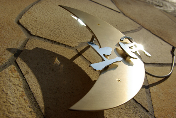 創作表札 三日月をモチーフに・・・ 2007/8/24 金曜日2012/8/24 金曜日 by miyasu 創作表札 表面処理が出来ました。 イメージ通りの仕上がりです LED点灯 三日月のシルエットが浮き上がります。 お問い合せ用URL : このページで紹介した作品についてのお問い合わせは、上記URLをコピーして 『お問い合せ』のぺージの記入欄に上記「お問い合せ用URL」を貼り付けてご連絡ください。 ご質問、見積依頼、ご注文についても『お問い合せ』のページからヒロノクラフト公式LINE及びメールでお願いします。 ※ご利用いただく端末によっては、コメント送信後にエラー表示されるなどのうまく反映されない場合がございます。 その場合はLINEにて、ご連絡ください。
