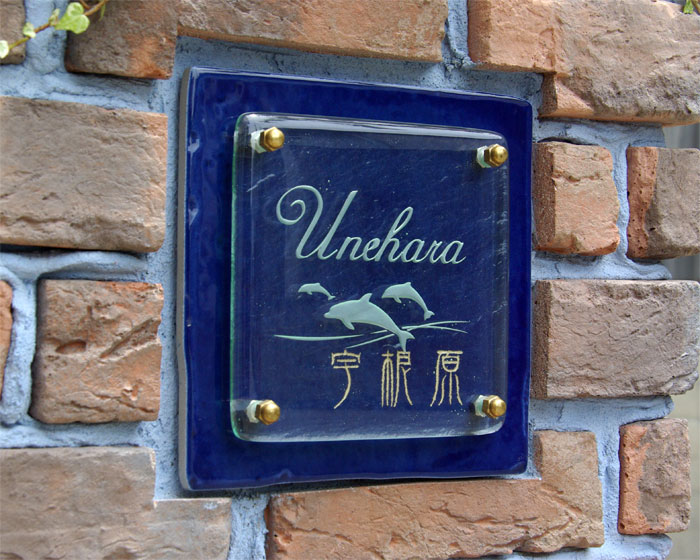 海をイメージした表札にしたかったのですが、 インディゴブルーのタイルに白くてシャープな文字,イルカ,波、 更にユラギガラスがさざ波のイメージとなるため 想像以上にオシャレな表札が出来ました。 また、漢字文字がアイボリーとなっているため、 2層のメリハリ,高級感も出ていて最高ですね。 お願いして正解でした。 返信