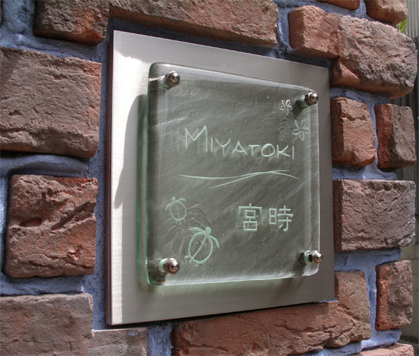 Free-Style表札 YURAGIガラス LED仕様 AC電源 2008/7/23 水曜日2012/12/8 土曜日 by miyasu ガラス表札【LED仕様】《AC電源》 LEDステンレスベースゆらぎガラスウィルモダン 機能門柱の表札部をLEDの表札に改造しました。(TOEX”ウィルモダン”) デザインはホヌ(ウミガメ)・モンステラ&プルメリアをレイアウト・・・ 大きな葉に深い切れ込みのモンステラはベースのステンレスに彫刻しました。 オリジナルの”YURAGIガラス”と良く合っています。 千葉県に送ります。 お問い合せ用URL : このページで紹介した作品についてのお問い合わせは、上記URLをコピーして 『お問い合せ』のぺージの記入欄に上記「お問い合せ用URL」を貼り付けてご連絡ください。 ご質問、見積依頼、ご注文についても『お問い合せ』のページからヒロノクラフト公式LINE及びメールでお願いします。 ※ご利用いただく端末によっては、コメント送信後にエラー表示されるなどのうまく反映されない場合がございます。 その場合はLINEにて、ご連絡ください。