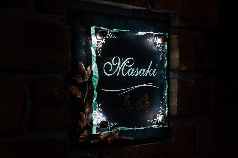 家の前を通る車がわざわざスピードを落として眺めながら走行しているのがわかります(^_^;)。私自身も、毎日のように夜になると外に出て、見とれています(今日は雨が降っていますが、雨の中で光る表札も素敵でした)。