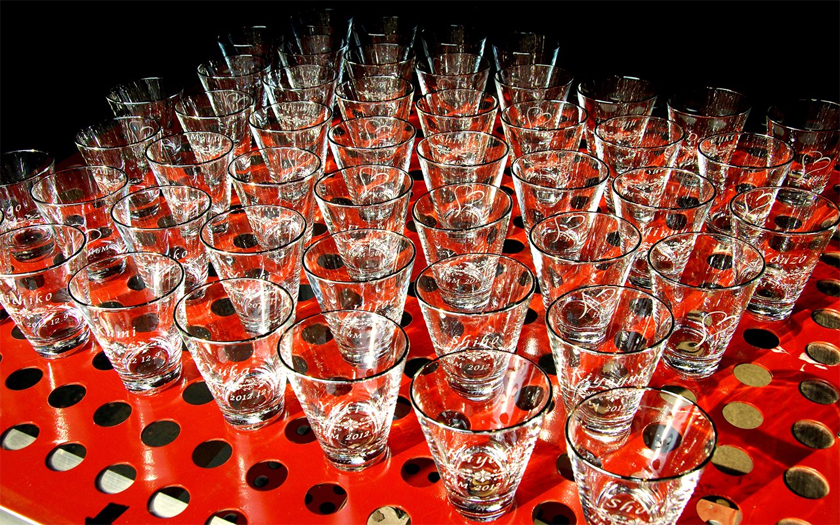 放送で紹介された完成した引き出物のグラスです