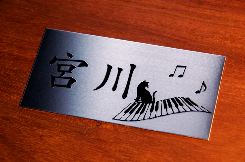 マンション用 表札 2013/6/26 水曜日2020/3/4 水曜日 by miyasu マンション用表札 ピアノ音符マンション用猫 ご希望のサイズ(60X120mm)で製作したマンション用のステンレス表札 軽いので取り付けは両面テープで固定 東京に送ります。 宮川 お問い合せ用URL : このページで紹介した作品についてのお問い合わせは、上記URLをコピーして 『お問い合せ』のぺージの記入欄に上記「お問い合せ用URL」を貼り付けてご連絡ください。 ご質問、見積依頼、ご注文についても『お問い合せ』のページからヒロノクラフト公式LINE及びメールでお願いします。 ※ご利用いただく端末によっては、コメント送信後にエラー表示されるなどのうまく反映されない場合がございます。 その場合はLINEにて、ご連絡ください。