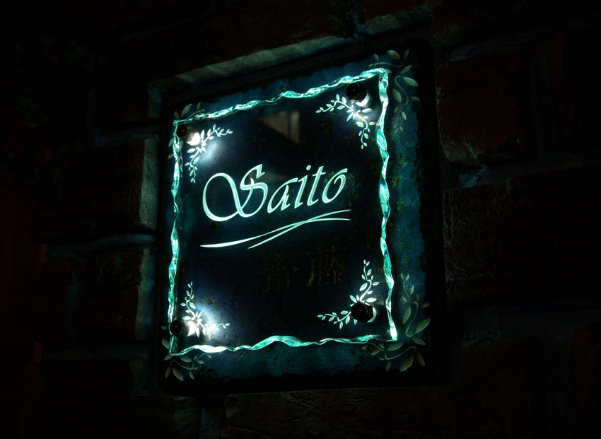 Free-Style表札 LED仕様 銅のバラのオブジェ 2013/8/17 土曜日2020/2/13 木曜日 by miyasu ガラス表札【LED仕様】《AC電源》 銅の飾りアートガラスアンティークタイル アンティークタイル(青)にアートガラスの組み合わせ タイルの漢字はシャンパンゴールドで着色 暗くなるとLEDが自動点灯してガラスの彫刻が浮き上がります。 表札を銅のバラのオブジェで包んで完成 三重県に送ります。 saito 齊藤 お問い合せ用URL : このページで紹介した作品についてのお問い合わせは、上記URLをコピーして 『お問い合せ』のぺージの記入欄に上記「お問い合せ用URL」を貼り付けてご連絡ください。 ご質問、見積依頼、ご注文についても『お問い合せ』のページからヒロノクラフト公式LINE及びメールでお願いします。 ※ご利用いただく端末によっては、コメント送信後にエラー表示されるなどのうまく反映されない場合がございます。 その場合はLINEにて、ご連絡ください。