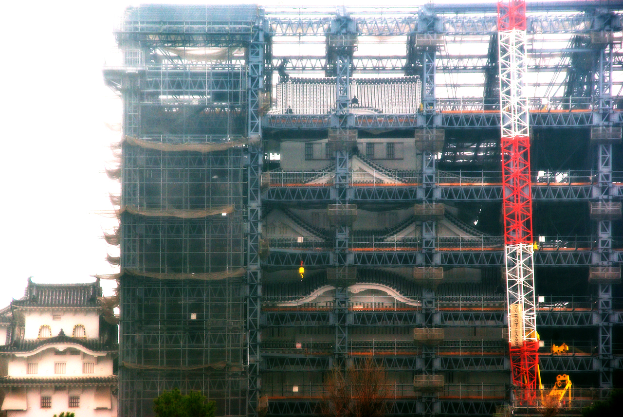 hitoyasumi・・・ 姫路城 素屋根の解体工事 2014/3/26 水曜日2015/7/7 火曜日 by miyasu hitoyasumi・・・ PENTAX 「平成の大修理」が最終段階に入った世界文化遺産・国宝姫路城で、 大天守がほぼ3年半ぶりに姿を現し始めました。 雨の中うっすらと久しぶりに見る姫路城の姿を撮影・・・ ちょうど1年後の来年3月27日、一般公開されます 今後5月上旬ごろ大天守最上層の屋根が現れ、8月ごろには再生した白鷺の城が完全に見れるようです お問い合せ用URL : このページで紹介した作品についてのお問い合わせは、上記URLをコピーして 『お問い合せ』のぺージの記入欄に上記「お問い合せ用URL」を貼り付けてご連絡ください。 ご質問、見積依頼、ご注文についても『お問い合せ』のページからヒロノクラフト公式LINE及びメールでお願いします。 ※ご利用いただく端末によっては、コメント送信後にエラー表示されるなどのうまく反映されない場合がございます。 その場合はLINEにて、ご連絡ください。