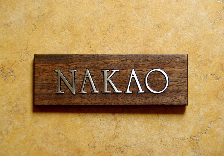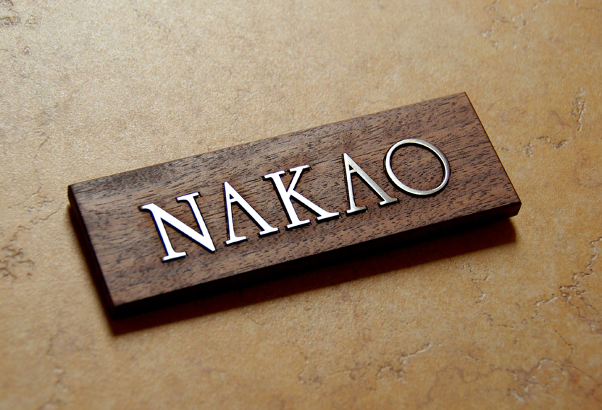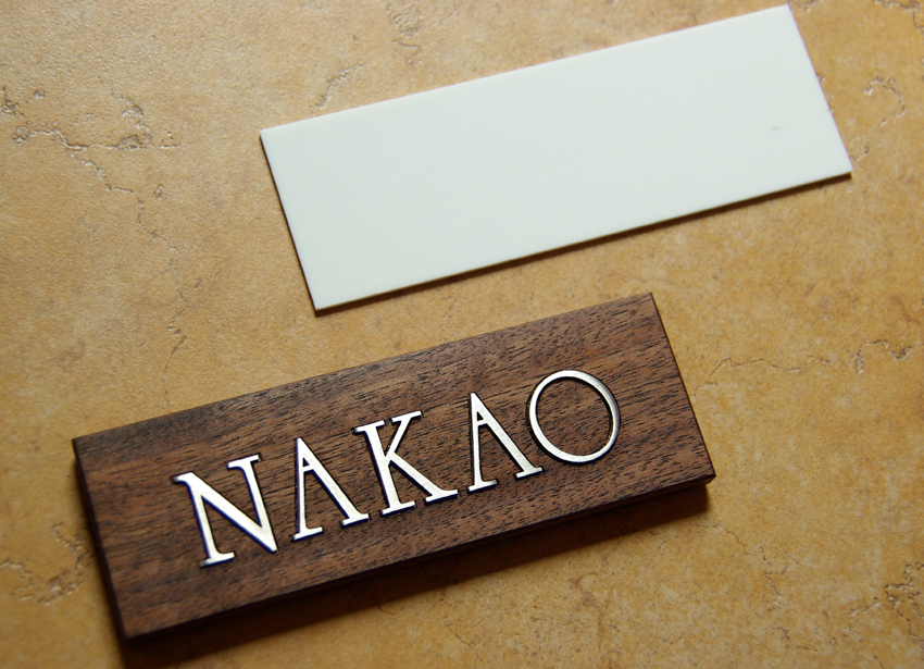 ステンレスの切り文字をウォールナットに象嵌加工