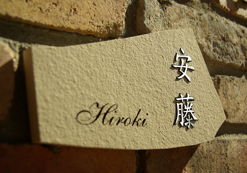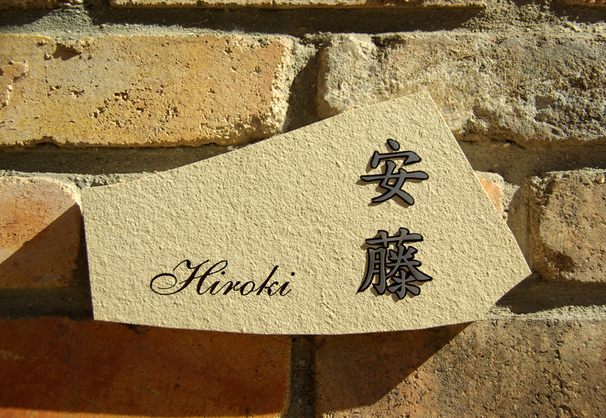 自然石表札 ステンレス象嵌(ぞうがん) 2015/10/16 金曜日2019/10/30 水曜日 by miyasu 自然石表札 創作表札 風水表札 自然石ジュラストーン風水ウォータージェット加工 乱形のジュラストーンにステンレスの切り文字を嵌め込みました(象嵌) ただ載せるのではなく、彫り込んだ自然石に嵌め込むことで一体感が出て、 自然石から異素材が浮きかがってくるようなイメージで製作しています 北海道に送ります 安藤 お問い合せ用URL : このページで紹介した作品についてのお問い合わせは、上記URLをコピーして 『お問い合せ』のぺージの記入欄に上記「お問い合せ用URL」を貼り付けてご連絡ください。 ご質問、見積依頼、ご注文についても『お問い合せ』のページからヒロノクラフト公式LINE及びメールでお願いします。 ※ご利用いただく端末によっては、コメント送信後にエラー表示されるなどのうまく反映されない場合がございます。 その場合はLINEにて、ご連絡ください。