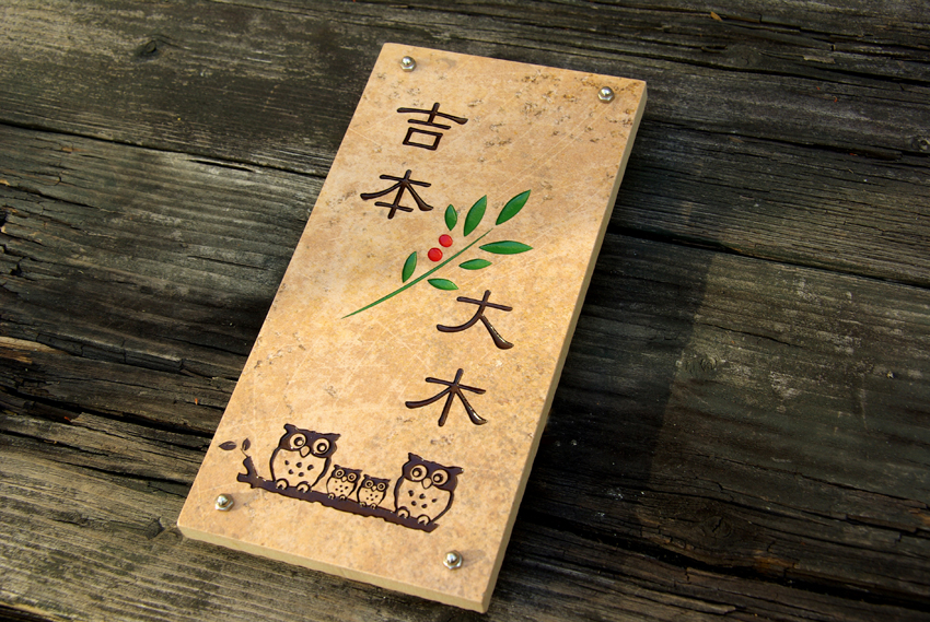 どうしても既製の表札にしたくなくて、メーカーの機能門柱に取り付けられるものを作ってくれるお店を探したところ、いくつかのお店に断られ、やっとヒロノクラフトさんへたどり着きました。とても早く仕上げて頂きました。完成したものを見て、家族みんなで感激してます!ありがとうございました!!