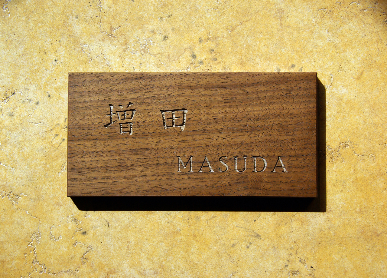 木の表札 ウォールナット 2016/2/6 土曜日2019/10/24 木曜日 by miyasu 施工写真 木の表札 木施工写真シンプルウォールナット 無垢のウォールナットの表札 (幅200 高さ100 厚み12mm) 素材を活かしてシンプルなレイアウトで製作しました。 文字は彫刻のみ(着色無し)で影で表情を作ります 強力両面テープ固定 福岡県に送ります 表札 取付写真 masuda 増田 お問い合せ用URL : このページで紹介した作品についてのお問い合わせは、上記URLをコピーして 『お問い合せ』のぺージの記入欄に上記「お問い合せ用URL」を貼り付けてご連絡ください。 ご質問、見積依頼、ご注文についても『お問い合せ』のページからヒロノクラフト公式LINE及びメールでお願いします。 ※ご利用いただく端末によっては、コメント送信後にエラー表示されるなどのうまく反映されない場合がございます。 その場合はLINEにて、ご連絡ください。