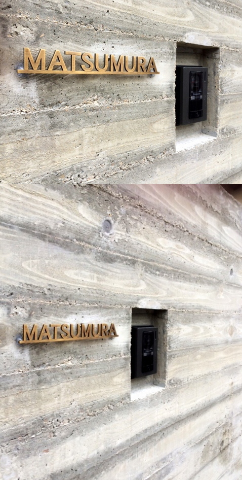 真鍮切り文字表札 2016/6/2 木曜日2019/10/23 水曜日 by miyasu 施工写真 真鍮切り文字表札 真鍮切り文字いぶし施工写真浮き文字 いぶし処理真鍮の切り文字表札(ウレタンクリアーコート) ご希望のサイズで製作しました 幅225mm 表札の後ろに付ける脚(SUSM3ネジ)はご希望の長さで固定 コンクリートの打ちっぱなしの壁に少し浮かせて取り付けられます 奈良県に送ります 施工写真 木目を入れたコンクリートの打ちっぱなしの塀とよく合っています matsumura お問い合せ用URL : このページで紹介した作品についてのお問い合わせは、上記URLをコピーして 『お問い合せ』のぺージの記入欄に上記「お問い合せ用URL」を貼り付けてご連絡ください。 ご質問、見積依頼、ご注文についても『お問い合せ』のページからヒロノクラフト公式LINE及びメールでお願いします。 ※ご利用いただく端末によっては、コメント送信後にエラー表示されるなどのうまく反映されない場合がございます。 その場合はLINEにて、ご連絡ください。