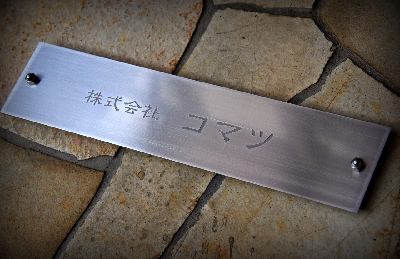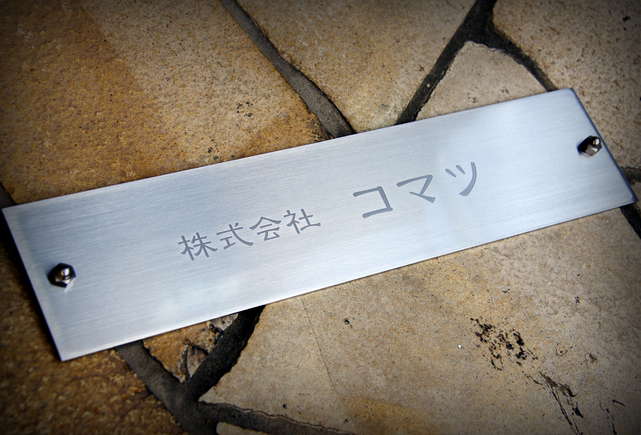 ステンレス製看板 2016/11/3 木曜日2016/11/4 金曜日 by miyasu 看板 ステンレス看板 ヘアーライン仕上げのステンレス製看板 シンプルに彫刻のみで仕上げました へアーライン加工は角度によって、映すものによって表情が変わります 市内に送ります お問い合せ用URL : このページで紹介した作品についてのお問い合わせは、上記URLをコピーして 『お問い合せ』のぺージの記入欄に上記「お問い合せ用URL」を貼り付けてご連絡ください。 ご質問、見積依頼、ご注文についても『お問い合せ』のページからヒロノクラフト公式LINE及びメールでお願いします。 ※ご利用いただく端末によっては、コメント送信後にエラー表示されるなどのうまく反映されない場合がございます。 その場合はLINEにて、ご連絡ください。