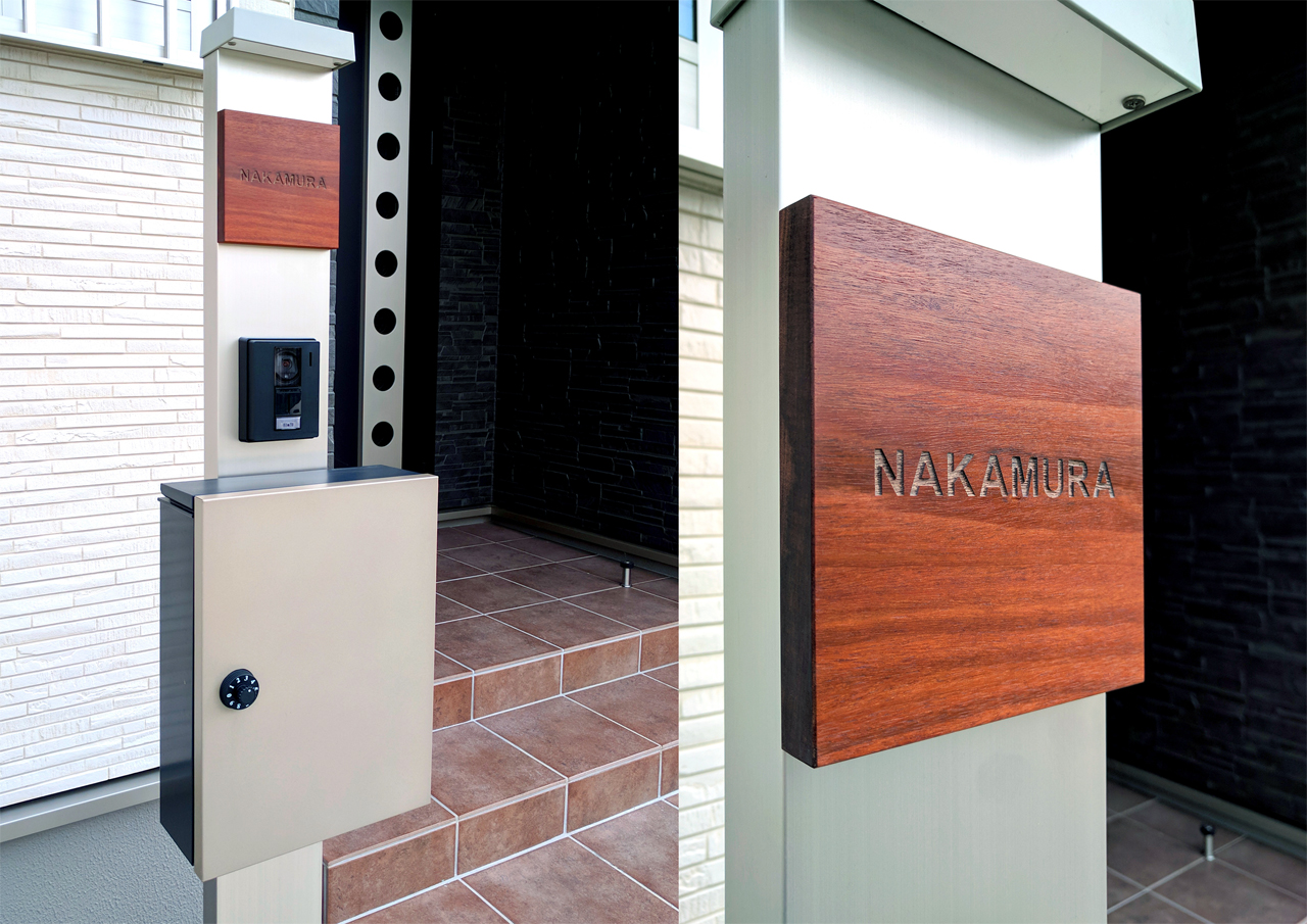 木の表札 イペ材 2017/9/22 金曜日2019/10/9 水曜日 by miyasu 施工写真 木の表札 機能門柱 オーダー表札 施工写真15cm x 15cmイペ(南洋材)風水無垢ガラスコーティング 無垢のイペ材のオーダーサイズの表札 15cmx15cm 彫刻の文字は着色無し 表札の表面はガラスコーティングでトップコートしています ステンレス製の機能門柱に取り付けられます 岐阜県に送ります 表札 設置写真 nakamura 中村 お問い合せ用URL : このページで紹介した作品についてのお問い合わせは、上記URLをコピーして 『お問い合せ』のぺージの記入欄に上記「お問い合せ用URL」を貼り付けてご連絡ください。 ご質問、見積依頼、ご注文についても『お問い合せ』のページからヒロノクラフト公式LINE及びメールでお願いします。 ※ご利用いただく端末によっては、コメント送信後にエラー表示されるなどのうまく反映されない場合がございます。 その場合はLINEにて、ご連絡ください。