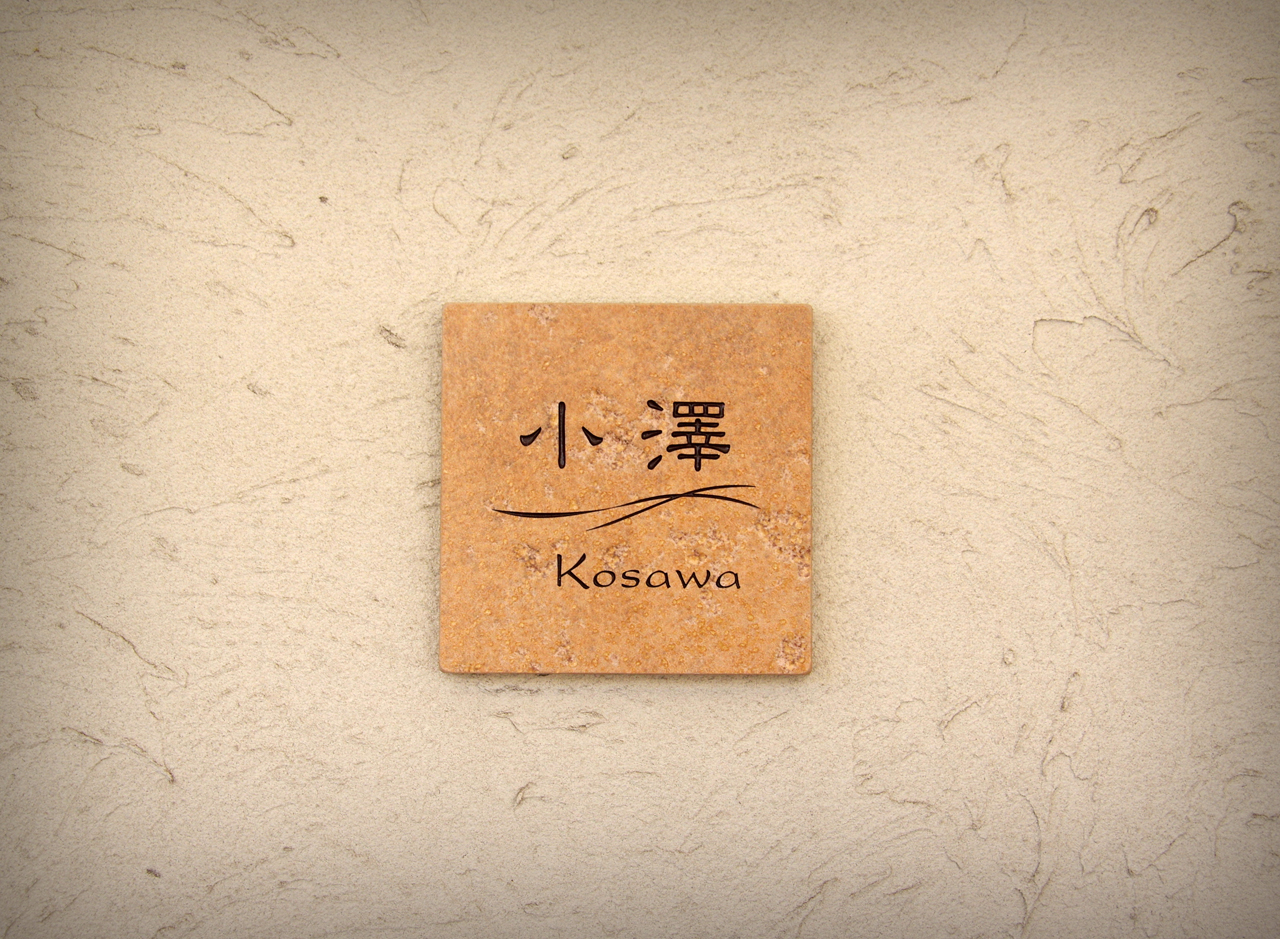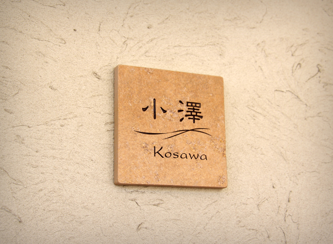 凹凸があって表情豊かなアンティークタイルの小さな表札