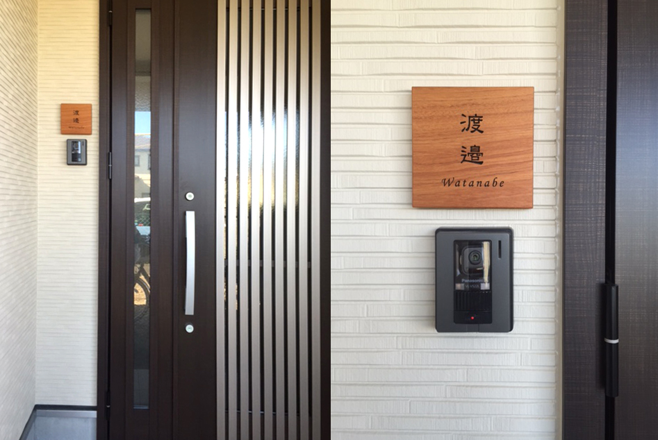 木の表札 アパ材 2018/4/23 月曜日2019/10/8 火曜日 by miyasu 施工写真 木の表札 木施工写真15cm x 15cmアパガラスコーティング 鮮やかな木目のアパ材の表札 玄関の写真を拝見してご提案しました 15x15cm フォント、レイアウトにこだわりました 表面はガラスコーティング処理 静岡県に送ります 表札 施工写真 watanabe 渡邊 お問い合せ用URL : このページで紹介した作品についてのお問い合わせは、上記URLをコピーして 『お問い合せ』のぺージの記入欄に上記「お問い合せ用URL」を貼り付けてご連絡ください。 ご質問、見積依頼、ご注文についても『お問い合せ』のページからヒロノクラフト公式LINE及びメールでお願いします。 ※ご利用いただく端末によっては、コメント送信後にエラー表示されるなどのうまく反映されない場合がございます。 その場合はLINEにて、ご連絡ください。