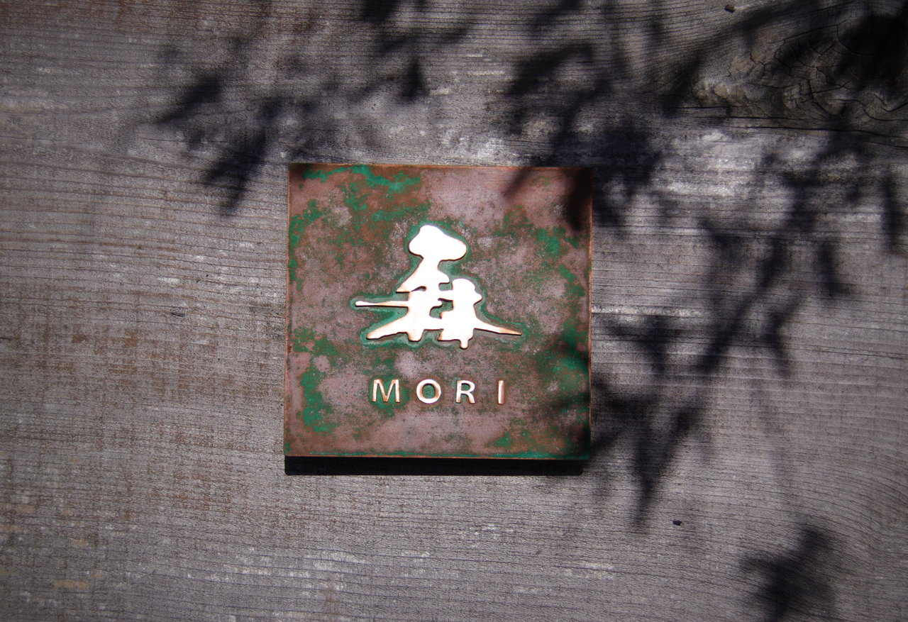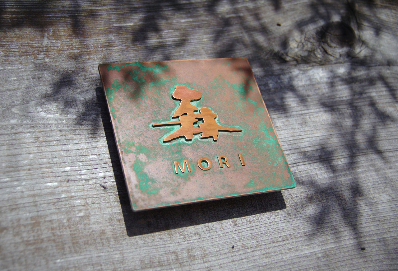 文字を浮き文字にして時間をかけて緑青サビを育てました