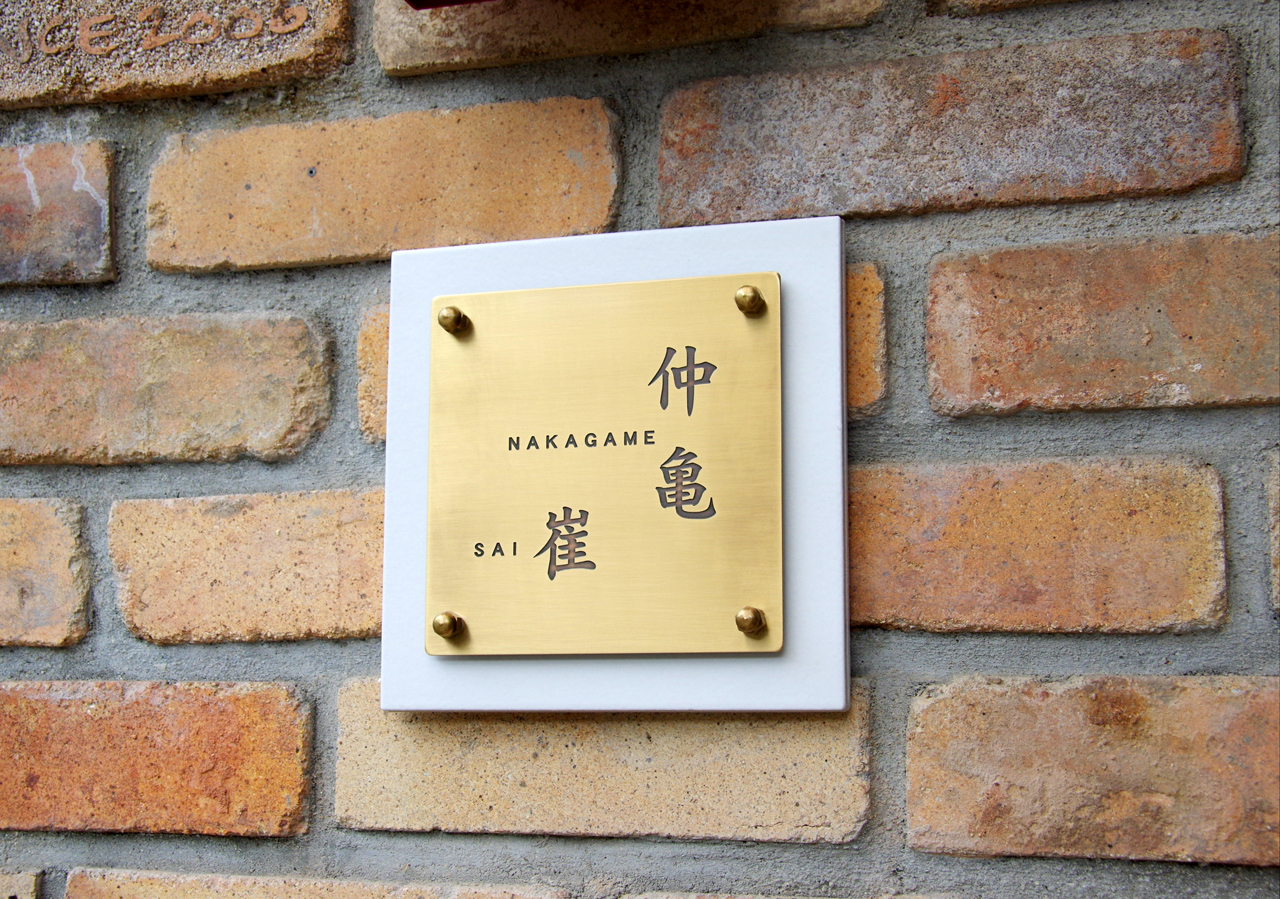 Free-Style表札 いぶし真鍮プレート 2018/6/30 土曜日2019/10/7 月曜日 by miyasu 施工写真 FREE-STYLE表札(フリースタイル表札) 二世帯真鍮いぶしフリースタイル施工写真18cm x 18cm ホワイトタイルに真鍮プレートのフリースタイル表札 門柱の写真を拝見してご提案しました。 名前のバランスにこだわってデザインしました。 LINE@で打ち合わせ 取付用の電動工具(無料貸し出し) 神奈川県に送ります 表札 施工写真 nakagame 仲亀 sai 崔 お問い合せ用URL : このページで紹介した作品についてのお問い合わせは、上記URLをコピーして 『お問い合せ』のぺージの記入欄に上記「お問い合せ用URL」を貼り付けてご連絡ください。 ご質問、見積依頼、ご注文についても『お問い合せ』のページからヒロノクラフト公式LINE及びメールでお願いします。 ※ご利用いただく端末によっては、コメント送信後にエラー表示されるなどのうまく反映されない場合がございます。 その場合はLINEにて、ご連絡ください。