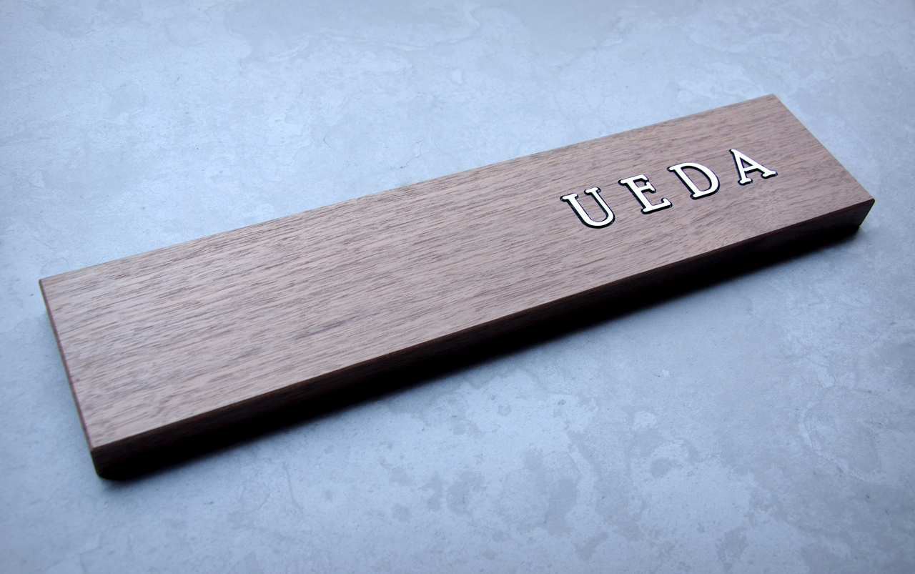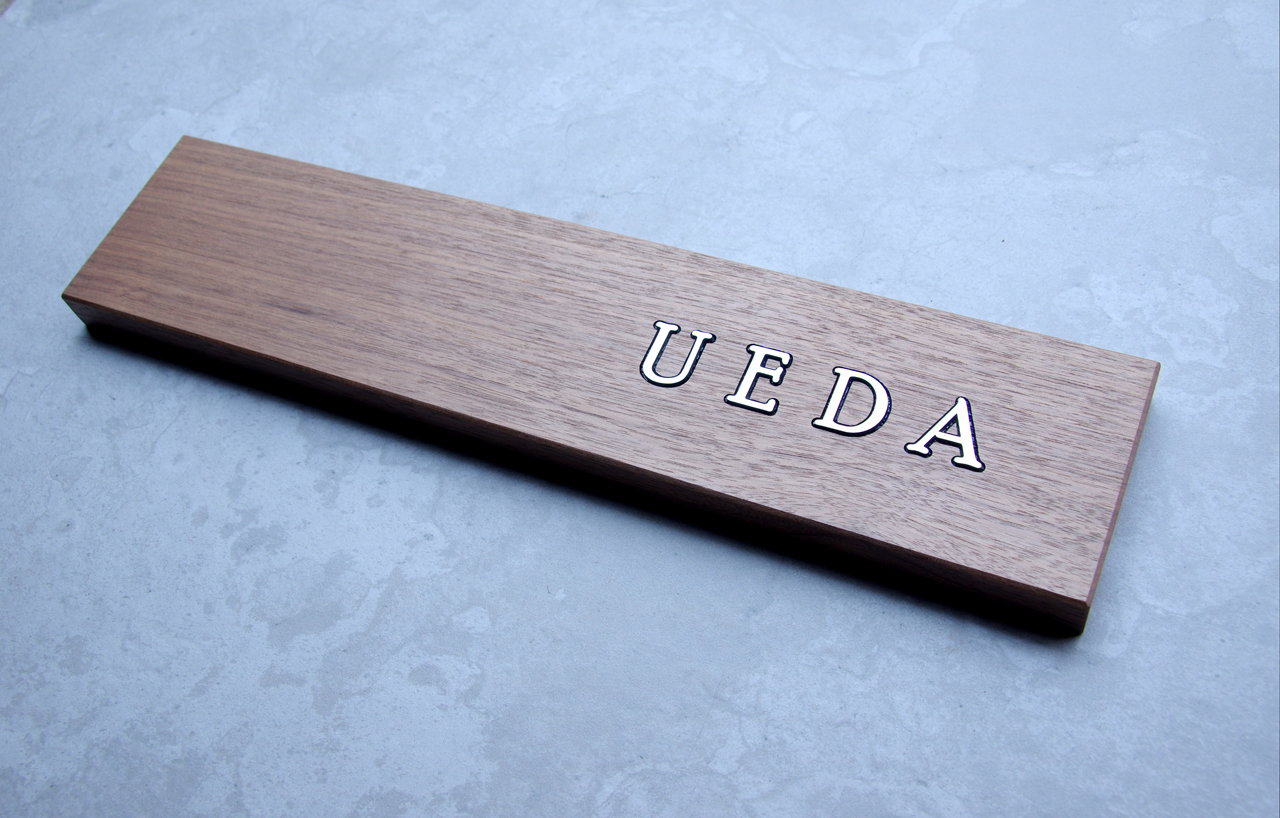 無垢のウォールナットの表札 ステンレス象嵌