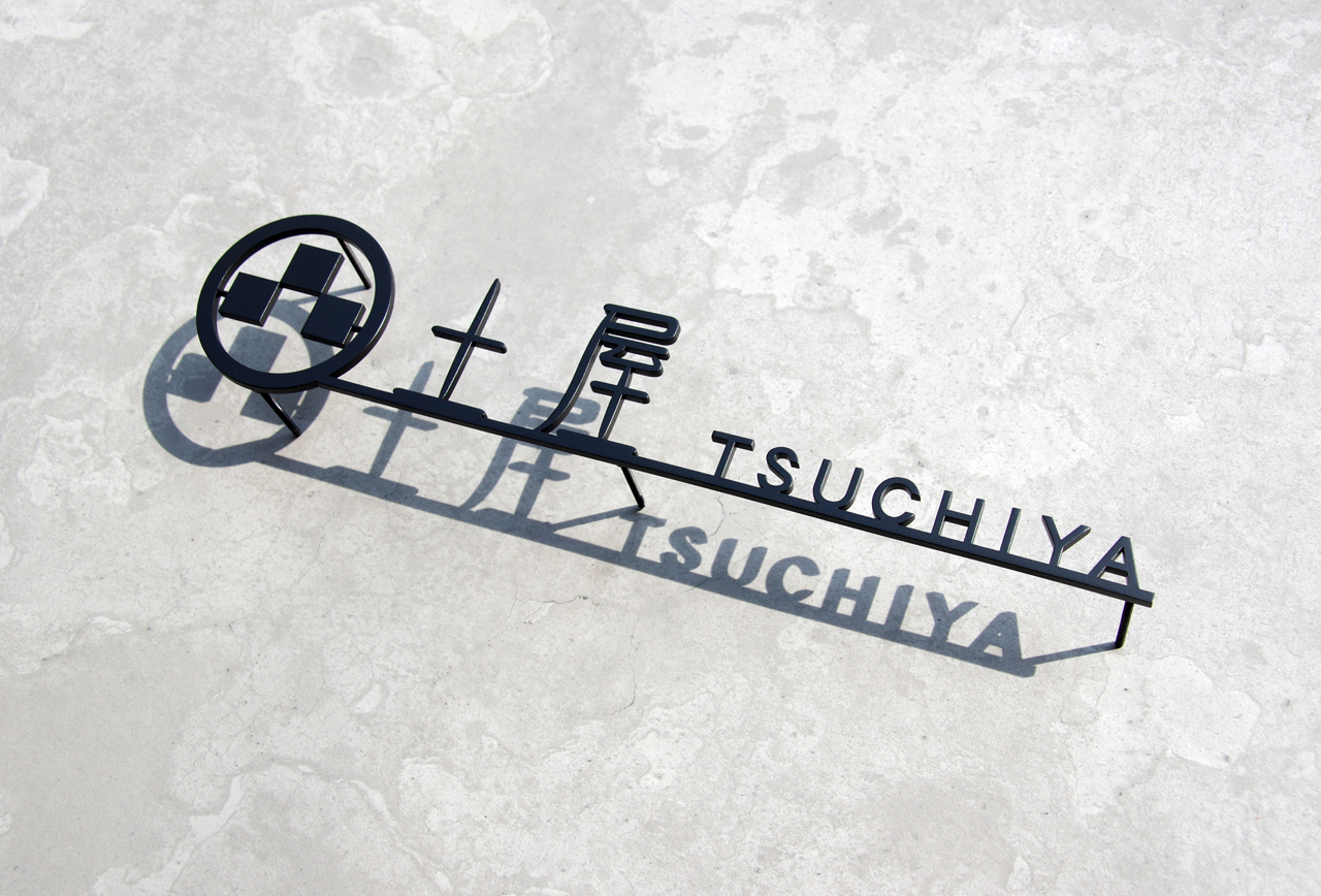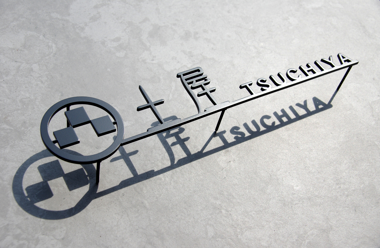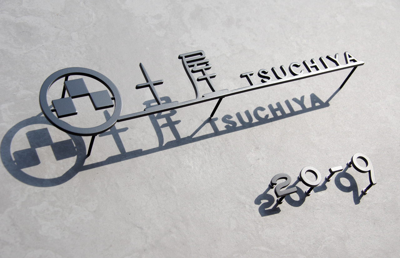 家紋(丸に三石)をモチーフにデザインしたステンレス切り文字表札
