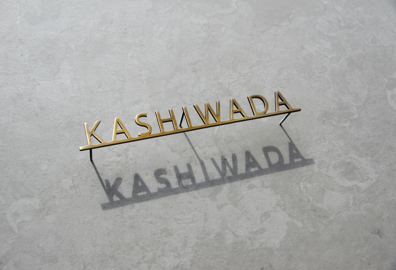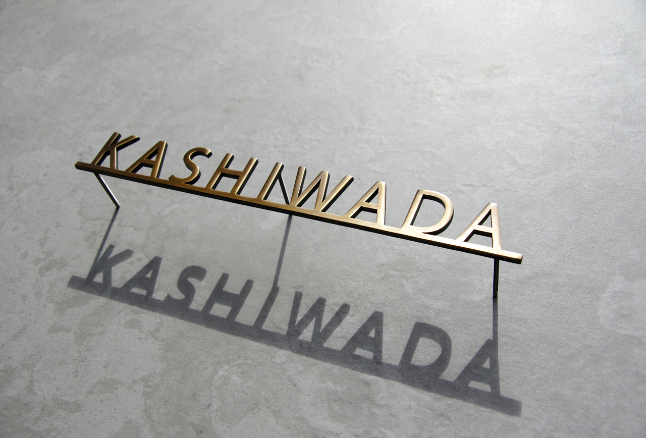 いぶし仕上げの真鍮切り文字表札