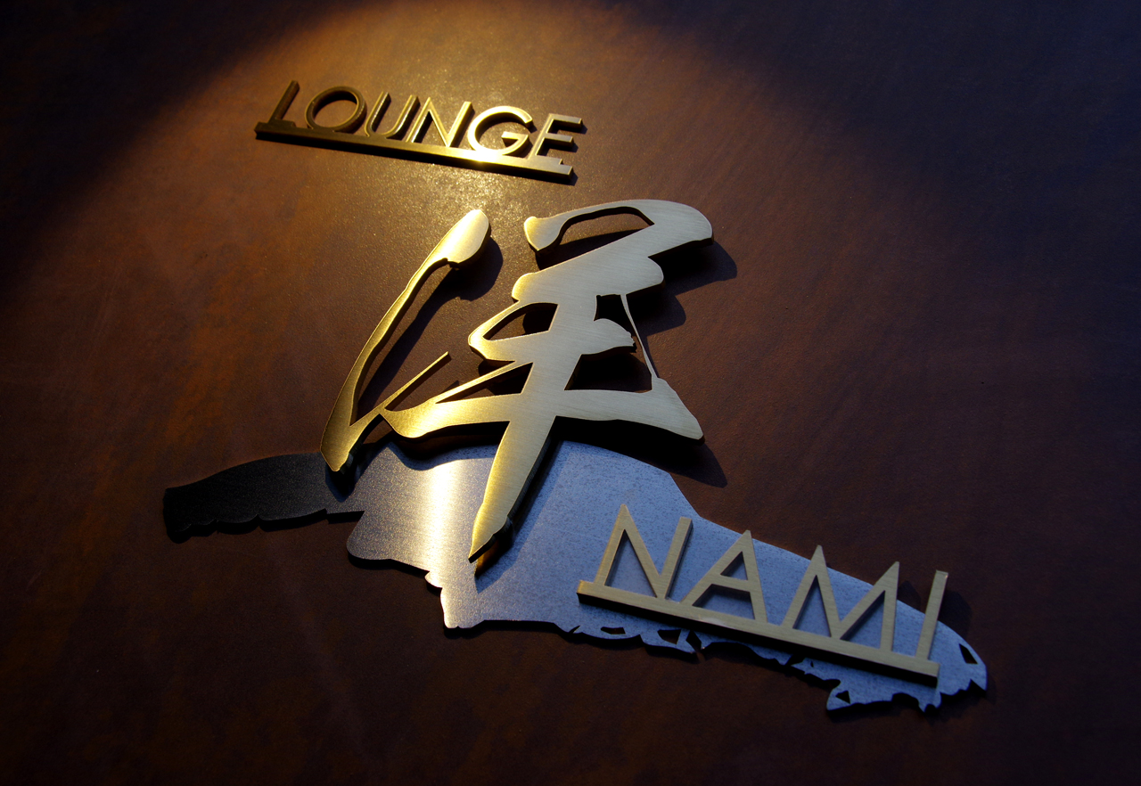 真鍮とステンレスの組み合わせた看板を製作 姫路『ラウンジ 洋(ナミ)』