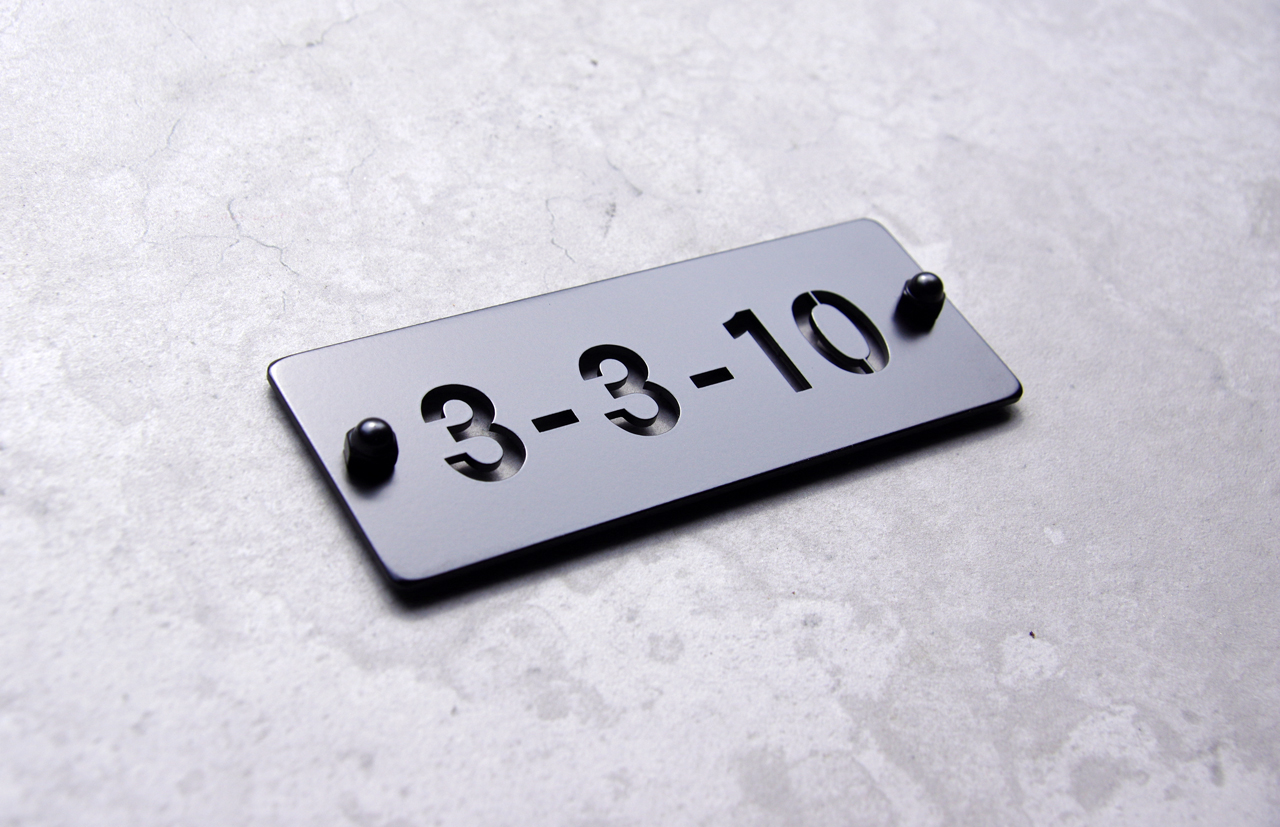 番地プレート マットブラック 2019/3/11 月曜日2019/3/11 月曜日 by miyasu 番地プレート マットブラックステンレスプレート番地プレートブラック塗装 マットブラック塗装のステンレス製番地プレート 130x50mm サイズを含めフルオーダーで製作しています。 裏面のナット1個分浮かせて固定します LINE@で打ち合わせ 東京に送ります お問い合せ用URL : このページで紹介した作品についてのお問い合わせは、上記URLをコピーして 『お問い合せ』のぺージの記入欄に上記「お問い合せ用URL」を貼り付けてご連絡ください。 ご質問、見積依頼、ご注文についても『お問い合せ』のページからヒロノクラフト公式LINE及びメールでお願いします。 ※ご利用いただく端末によっては、コメント送信後にエラー表示されるなどのうまく反映されない場合がございます。 その場合はLINEにて、ご連絡ください。